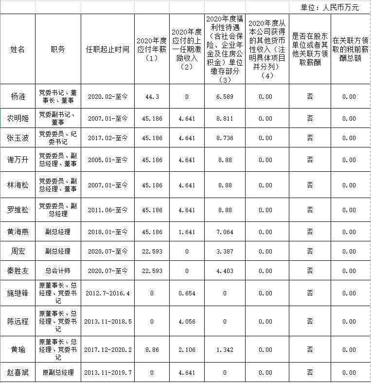 南寧交通投資集團(tuán)有限責(zé)任公司企業(yè)負(fù)責(zé)人2020年度薪酬情況