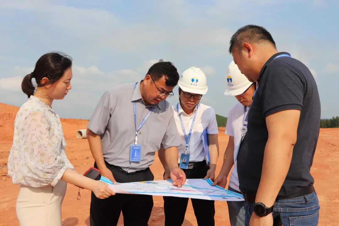 為進(jìn)一步推進(jìn)項(xiàng)目建設(shè),解決存在的問題,5月12日下午,集團(tuán)公司黨委書記、董事長(zhǎng)、總經(jīng)理?xiàng)顫i帶領(lǐng)交投園區(qū)公司黨支部書記、董事長(zhǎng)陳海華,投資發(fā)展部、項(xiàng)目部及項(xiàng)目參建單位的有關(guān)人員到項(xiàng)目現(xiàn)場(chǎng)檢查指導(dǎo)工作。