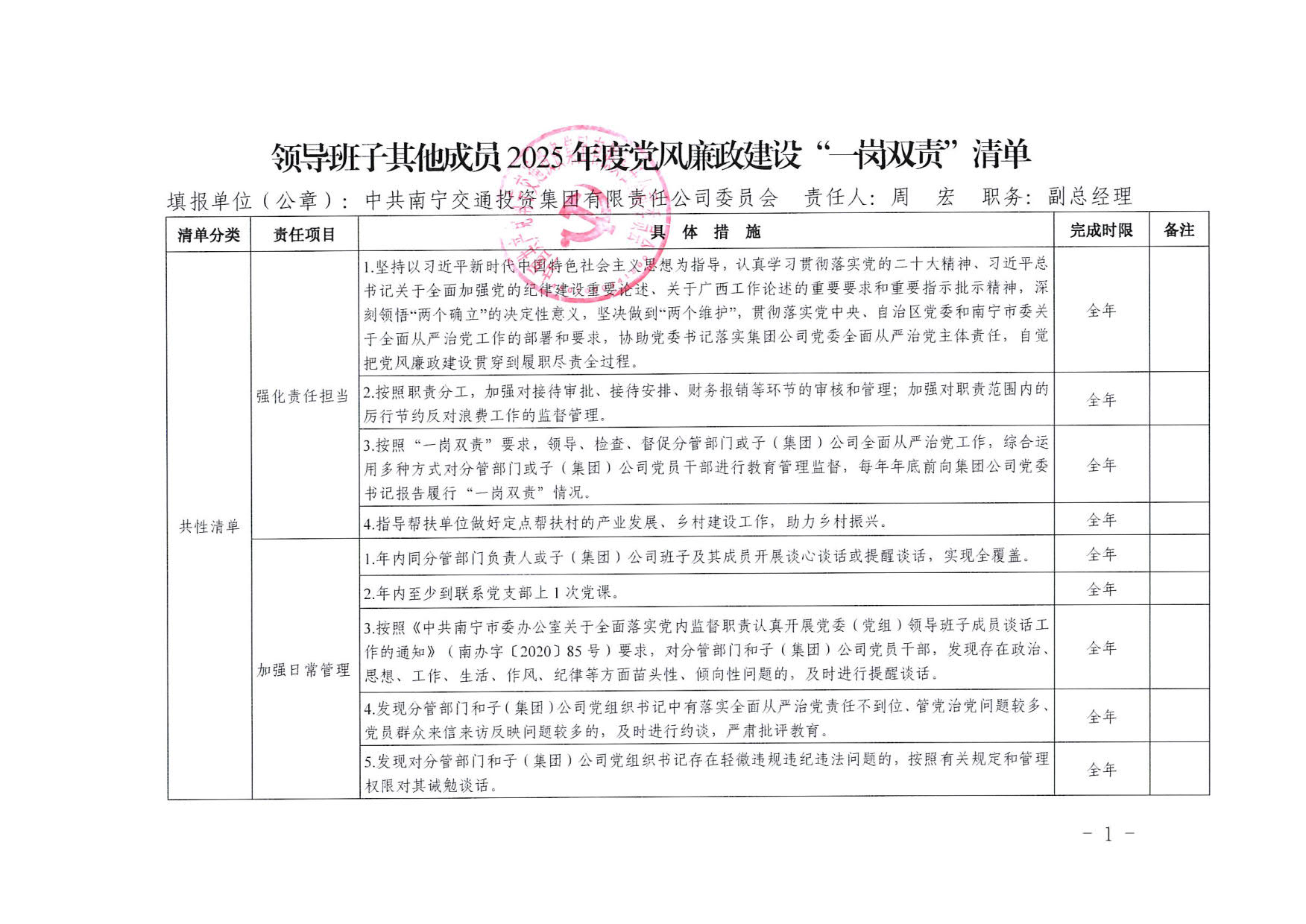 南寧交投集團(tuán)領(lǐng)導(dǎo)班子其他成員2025年度黨風(fēng)廉政建設(shè)“一崗雙責(zé)”清單(五)