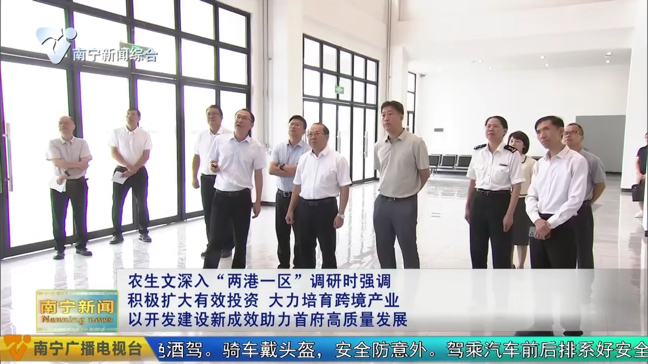 7月8日,自治區(qū)黨委常委、市委書記農生文到“兩港一區(qū)”調研開發(fā)建設情況,強調要深入貫徹落實習近平總書記關于對外開放的重要論述和關于廣西工作論述的重要要求,進一步樹牢開放發(fā)展理念,堅持貿易先行、貿工結合、以貿促工,充分發(fā)揮空港、鐵路港、公路港協(xié)同聯(lián)動和綜合保稅區(qū)政策優(yōu)勢,積極擴大有效投資,暢通跨境物流通道,大力培育跨境產(chǎn)業(yè),不斷開創(chuàng)“兩港一區(qū)”開發(fā)建設新局面,為加快建設面向東盟開放合作的國際化大都市注入強勁動力。
