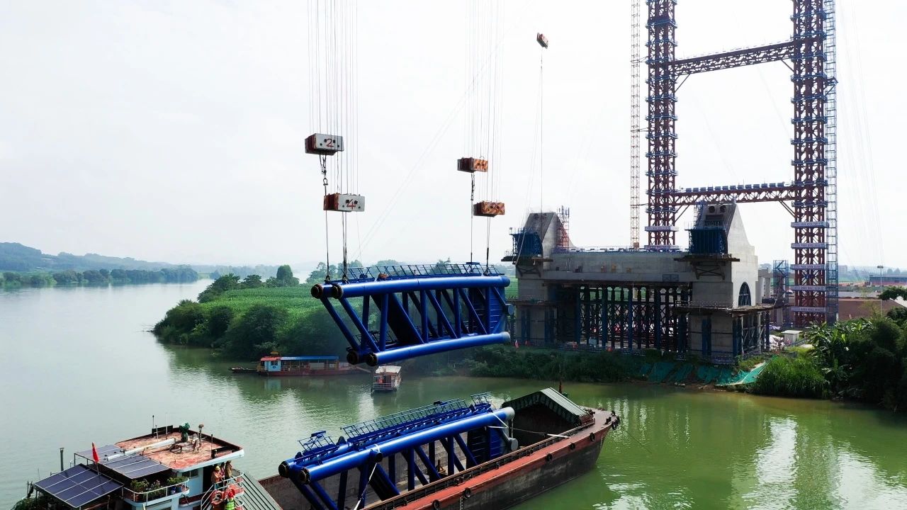 8月8日,南寧南過境線(吳圩機(jī)場至隆安延長線段)公路上正右江特大橋首節(jié)拱肋順利完成安裝,標(biāo)志著這座項目關(guān)鍵控制性工程正式進(jìn)入拱肋安裝的重要階段。